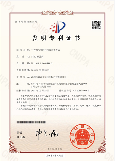發(fā)明專(zhuān)利證書(shū)【一種納米吸附材料的制備方法】