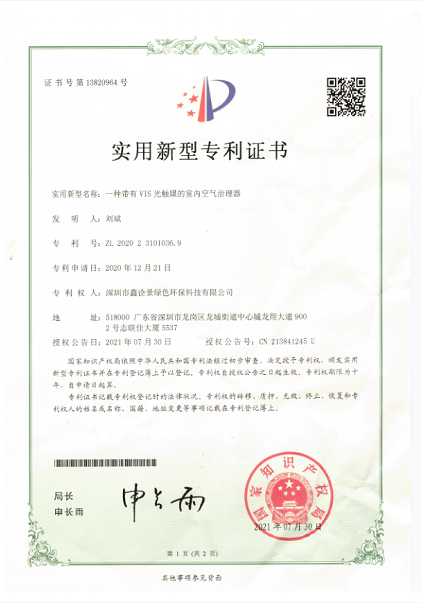 實(shí)用新型專(zhuān)利[VIS光觸媒室內(nèi)空氣治理器]
