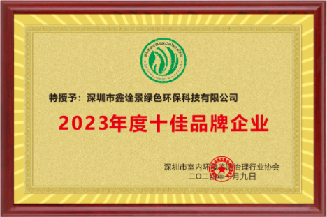 十佳品牌企業(yè)證書